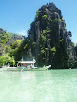 Comemos en lo que va a acabar siendo uno de nuestros lugares más habituales: el Ric’s Son. El bar tiene una decoración tropical, todo de madera, y por la noche ponen antorchas en la playa y mesas con manteles y velas. La comida es buenísima y las actuaciones en directo agradables. Reservamos el Tour A para el día siguiente en nuestro hotel (casi por todas partes ofrecen los mismos tours casi por los mismos precios). Dormimos un rato y nos bañamos en la playa. Buceando, descubrimos los espléndidos fondos…corales y peces que hay en la misma playa. Pasemos por El Nido que es un pueblito de 3 calles con la mayoría de locales en la misma playa, y ninguno de más de dos plantas. Predomina la decoración tropical, los balcones de bambú, los suelos de madera.
