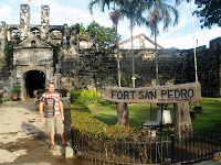 Cogemos un taxi (40 pesos) para ver la casa museo Gorordo, que está cerrada por ser lunes. La visitamos por fuera y aprovechamos para visitar el barrio, en el que aún quedan algunas casas de madera de la época colonial. Después vemos una especie de falla que es un monumento alegórico a la historia de la ciudad. Cogemos otro taxi para subir a la zona del hotel, al “mal” de la juerga de la noche anterior que está totalmente desierto. En el hotel nos tomamos unas bebidas y repasamos el correo, antes de salir a cenar al restaurante Beehive, que hemos localizado en internet. La comida es filipina-española y bastante buena: cenamos Kaldereta y Adobo, unos postres muy ricos por 14 euros (800 pesos). Nos tomamos una copa en el pub de anoche, y antes de engancharnos nos volvemos al hotel a escribir esto.