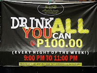 Por la tarde nos vamos al centro comercial Robinson donde compramos los billetes para Bohol (Supercat, la compañía más rápida y más cara:550 pesos por barba), un corta uñas (58 pesos) y donde tomamos zumos naturales (Emili zumo de buko, o sea coco natural, 30 pesos). Volvemos a cenar al restaurante del hotel, comida japonesa, buena y bonita, un vino tinto español bastante regular. Al final todo sale por 700 pesos (400 pesos el vino). Salimos de copas, más copas y más copas. Creemos recordar que el primer pub se llama “número 12”…